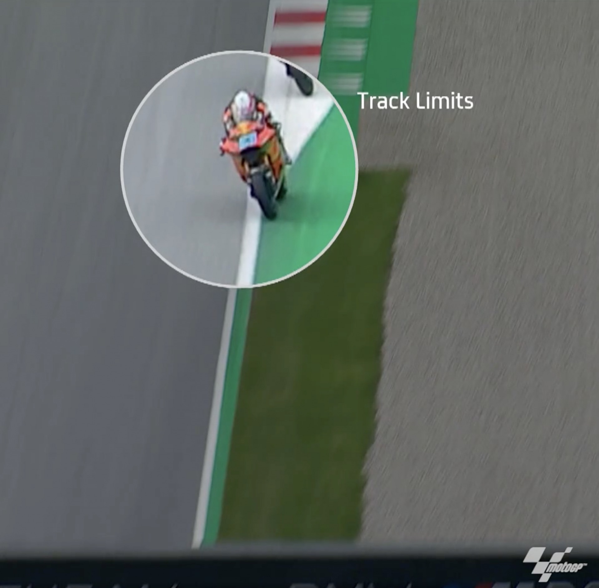 Track Limit Rule은 Kerb를 벗어나 라이더가 시간적인 이득을 얻었다고 판단하는 것으로 FIM Stwards가 TV 화면뿐 아니라 CCTV 등을 통해 주시하며 페널티를 부과합니다.