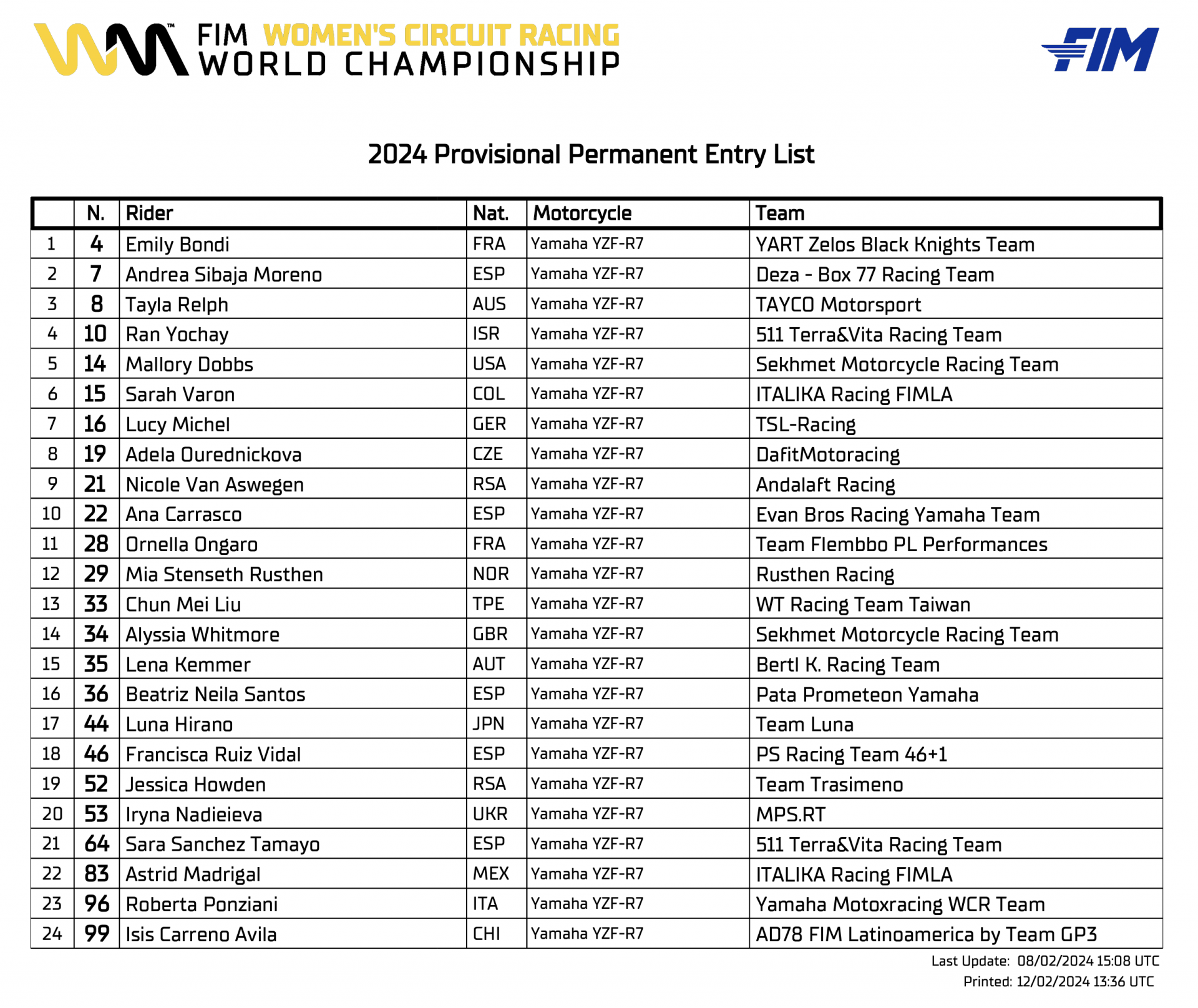 [WorldSBK]최초의 여성 라이더로만 구성된 클래스 'WorldWCR' 바이크는 Yamaha YZF-R7